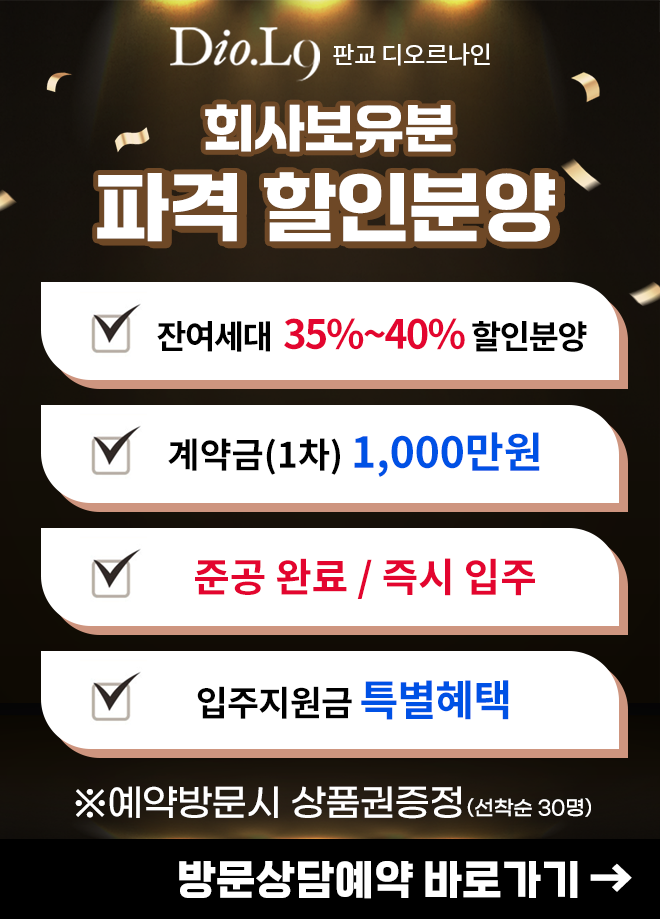 판교 디오르나인 방문예약 고객의 개인정보를 수집합니다. 수집한 개인정보는 방문예약 이외의 목적으로는 사용하지 않으며, 모집 기간 완료 후 즉시 파기합니다. 개인정보의 수집 및 이용에 대한 동의를 거부할 수 있으며, 이 경우 방문예약 접수가 어려울 수 있습니다.
